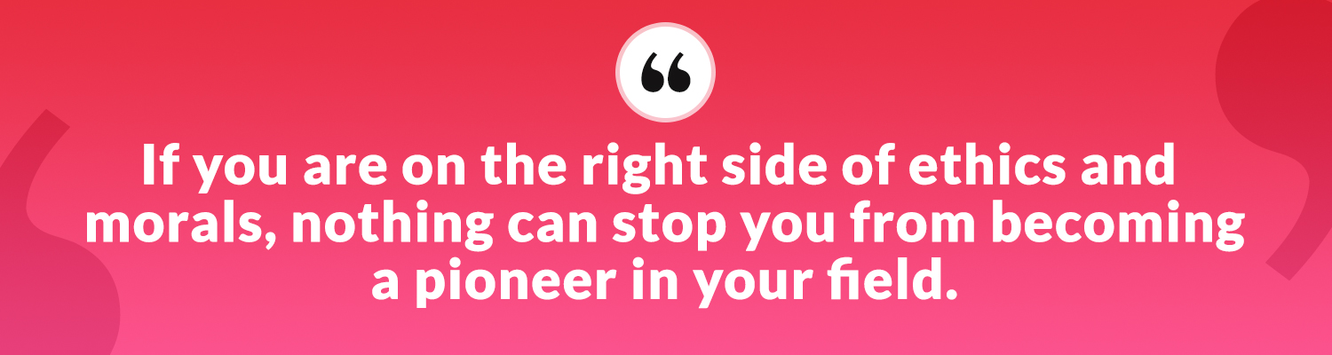 Constant learning and staying loyal to your Work and workplace make someone a true tech enthusiast and the best professional. If you are on the right side of ethics and morals, nothing can stop you from becoming a pioneer in your field. Remain focused, and never lose faith in yourselves. Remember, success only comes to those who believe in them.